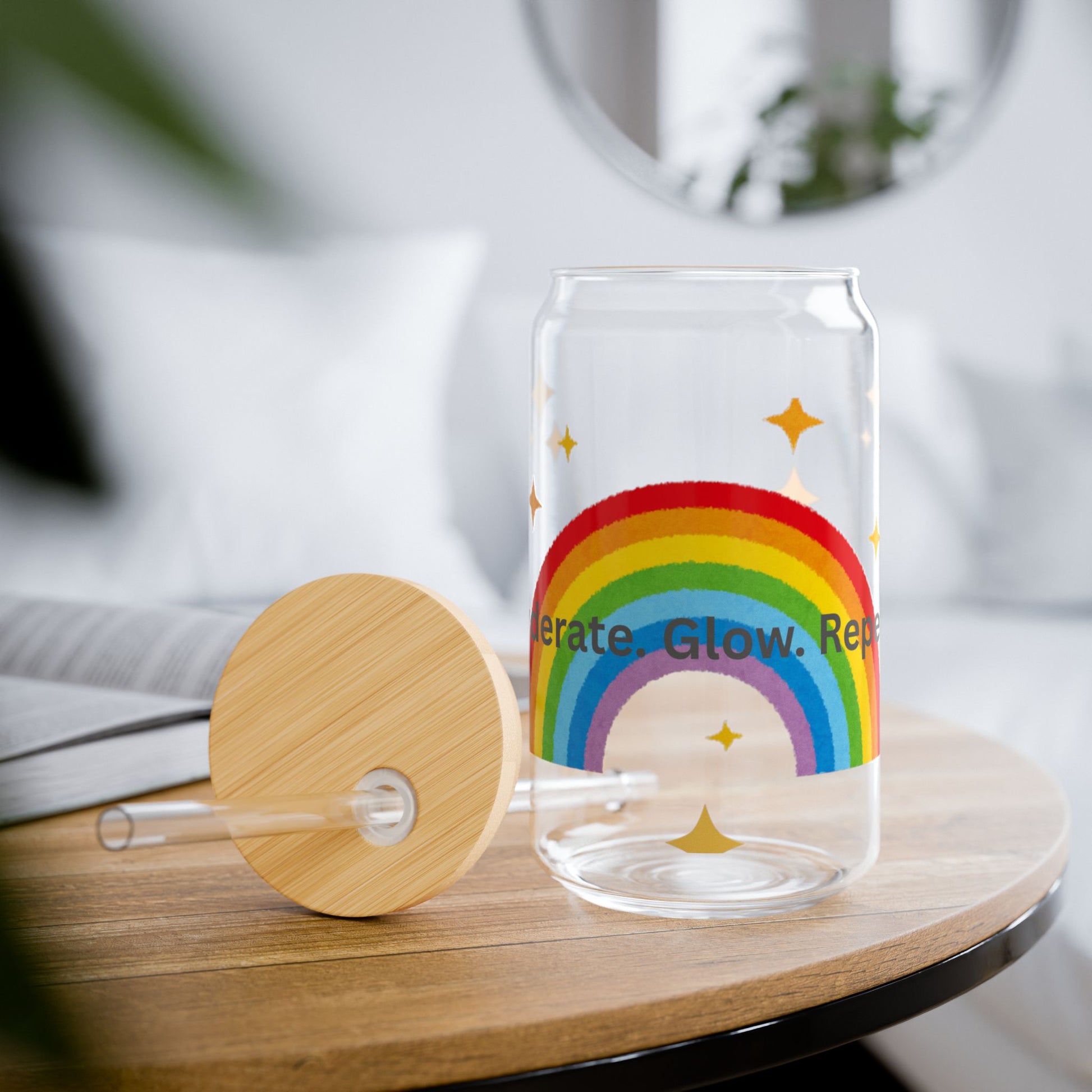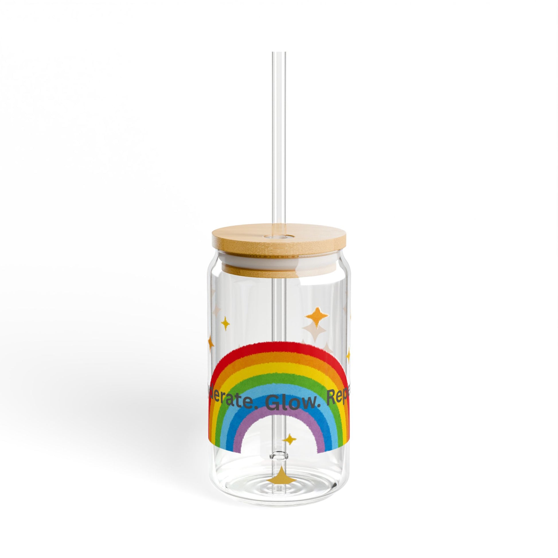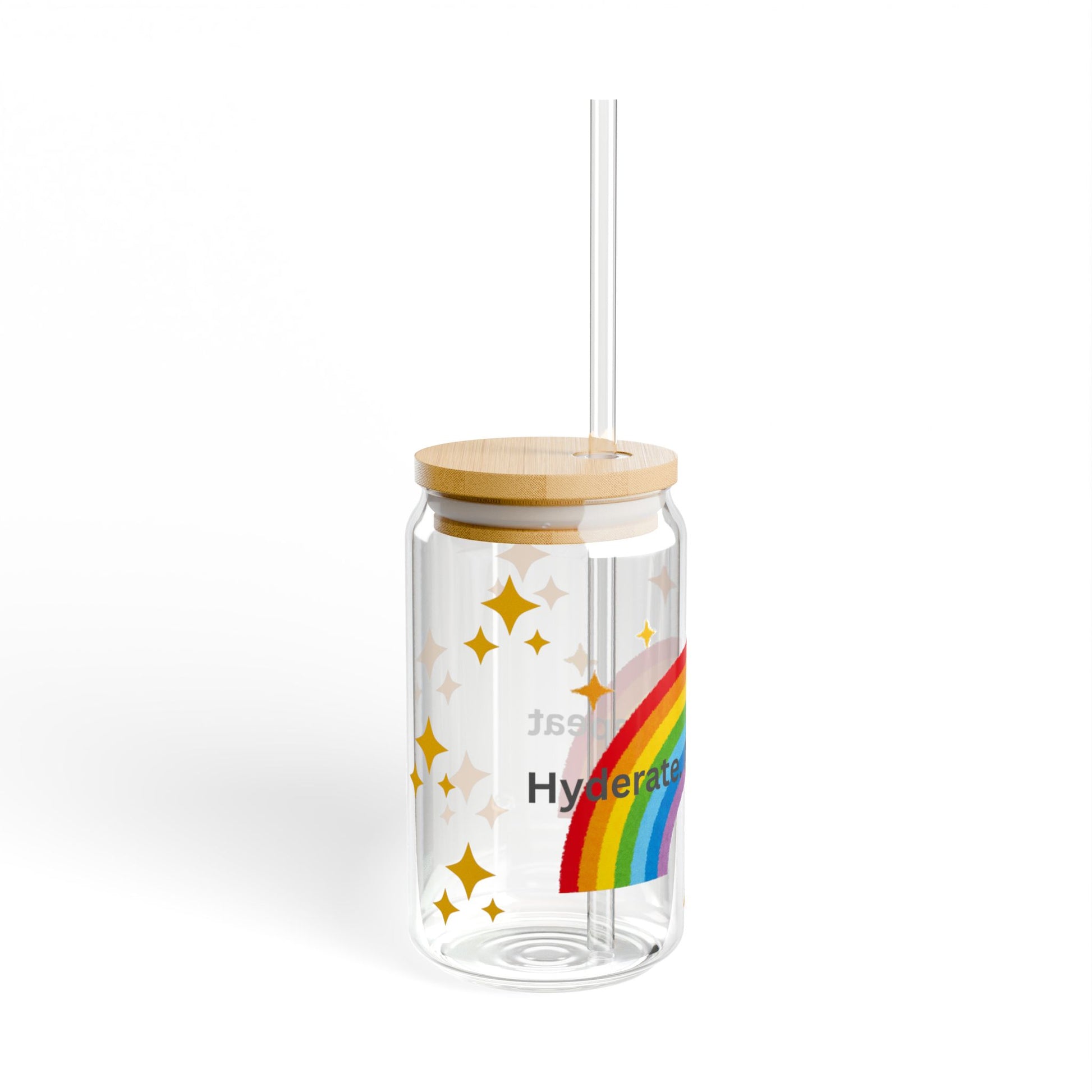 Rainbow Sipper Glass with Inspirational Quotes | 16oz Hydration Jar for Kids, Party Favors, Gifts, Eco-Friendly Drinkware